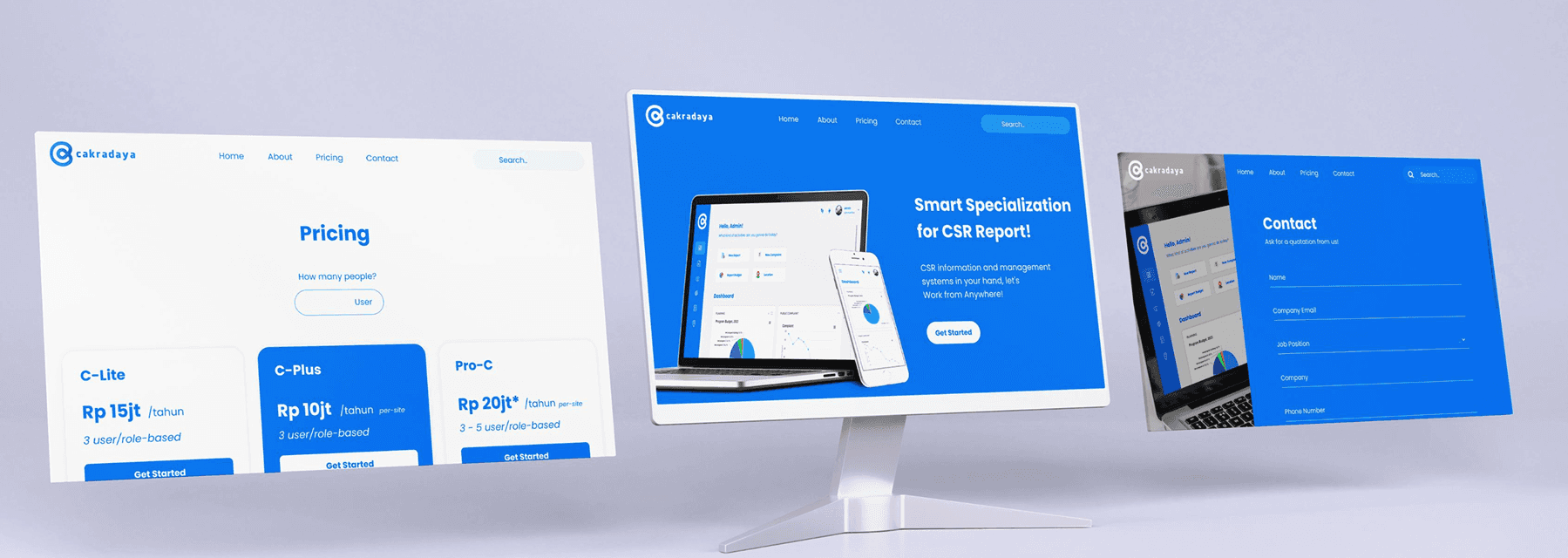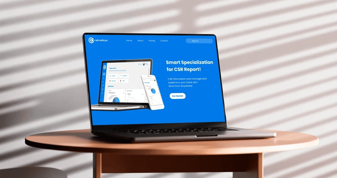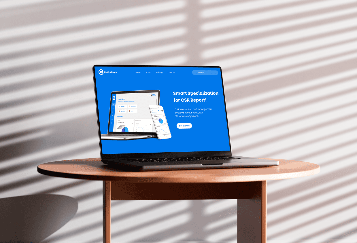 The web design created for the Cakradaya application serves to promote and facilitate the buying and selling of the app. It features a visually appealing layout that highlights key features and benefits, ensuring potential users are engaged.
